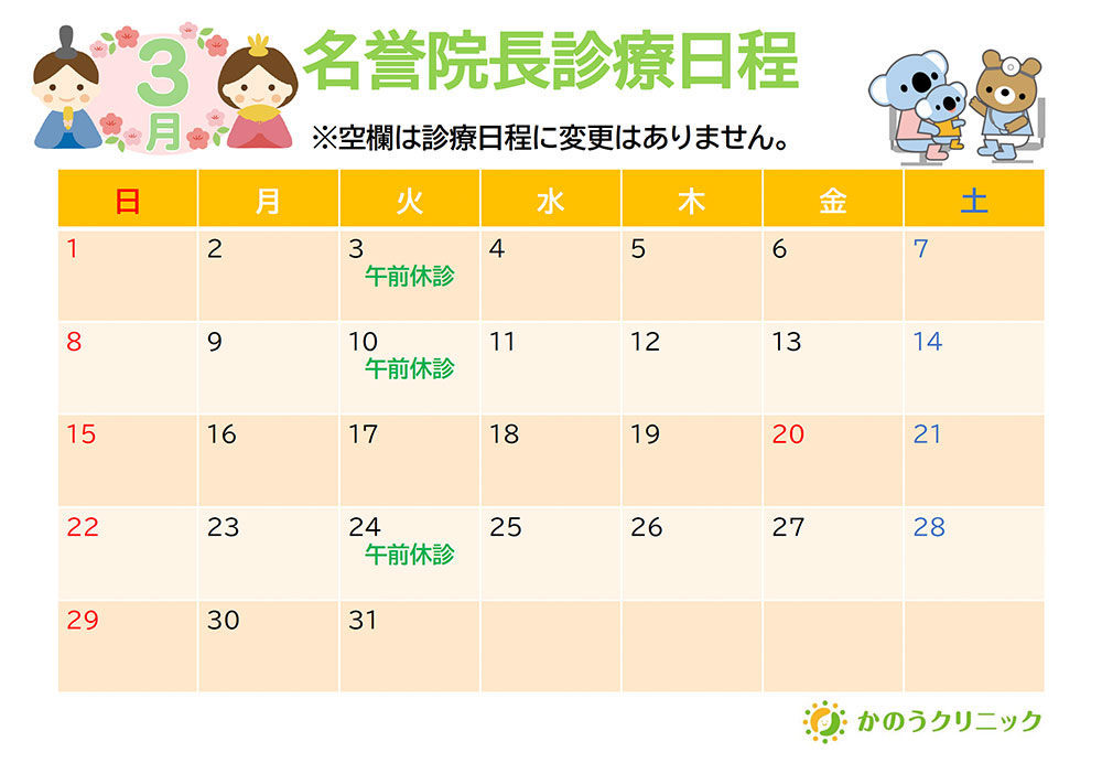 2026年3月:名誉院長の診察について